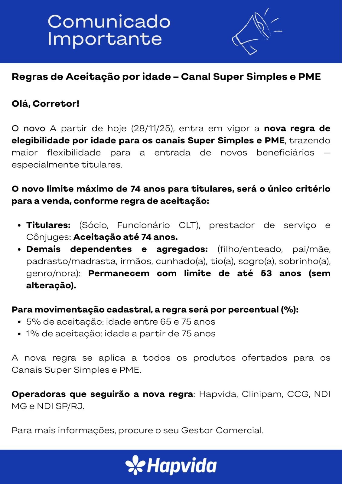 Informativos Campanha Consanguíneos da Hapvida: Oportunidade para Corretores VEJA MAIS 25 de novembro de 2025