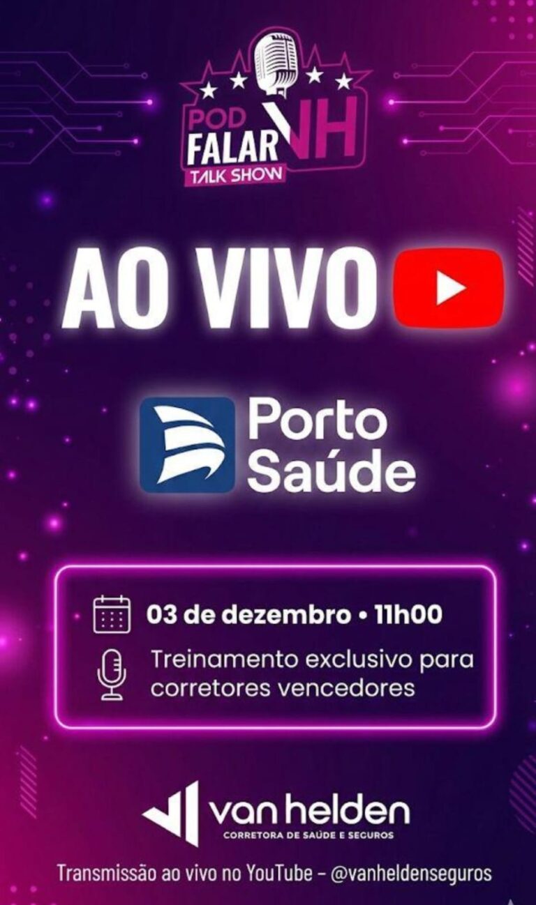 Corretor de saúde, você não pode perder a oportunidade de participar do nosso webinar ao vivo no dia 03 de dezembro às 11h00! Esse treinamento especial, promovido pela Van Helden Corretora, é voltado para corretores vencedores e trará informações valiosas sobre a operadora Porto Saúde. Venha aprimorar seus conhecimentos e impulsionar suas vendas! Estamos ansiosos para vê-lo lá e queremos que você faça parte da nossa equipe vencedora na VH!